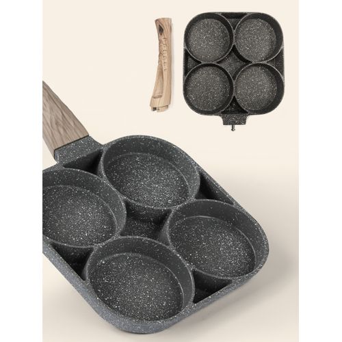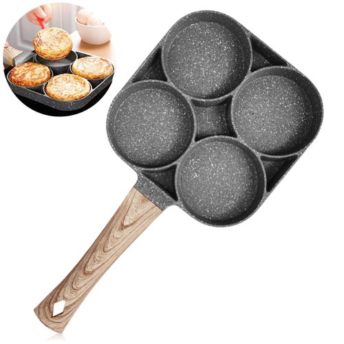 Poêle à 4 trous antiadhésive idéale pour préparer rapidement vos œufs, harcha et pancakes